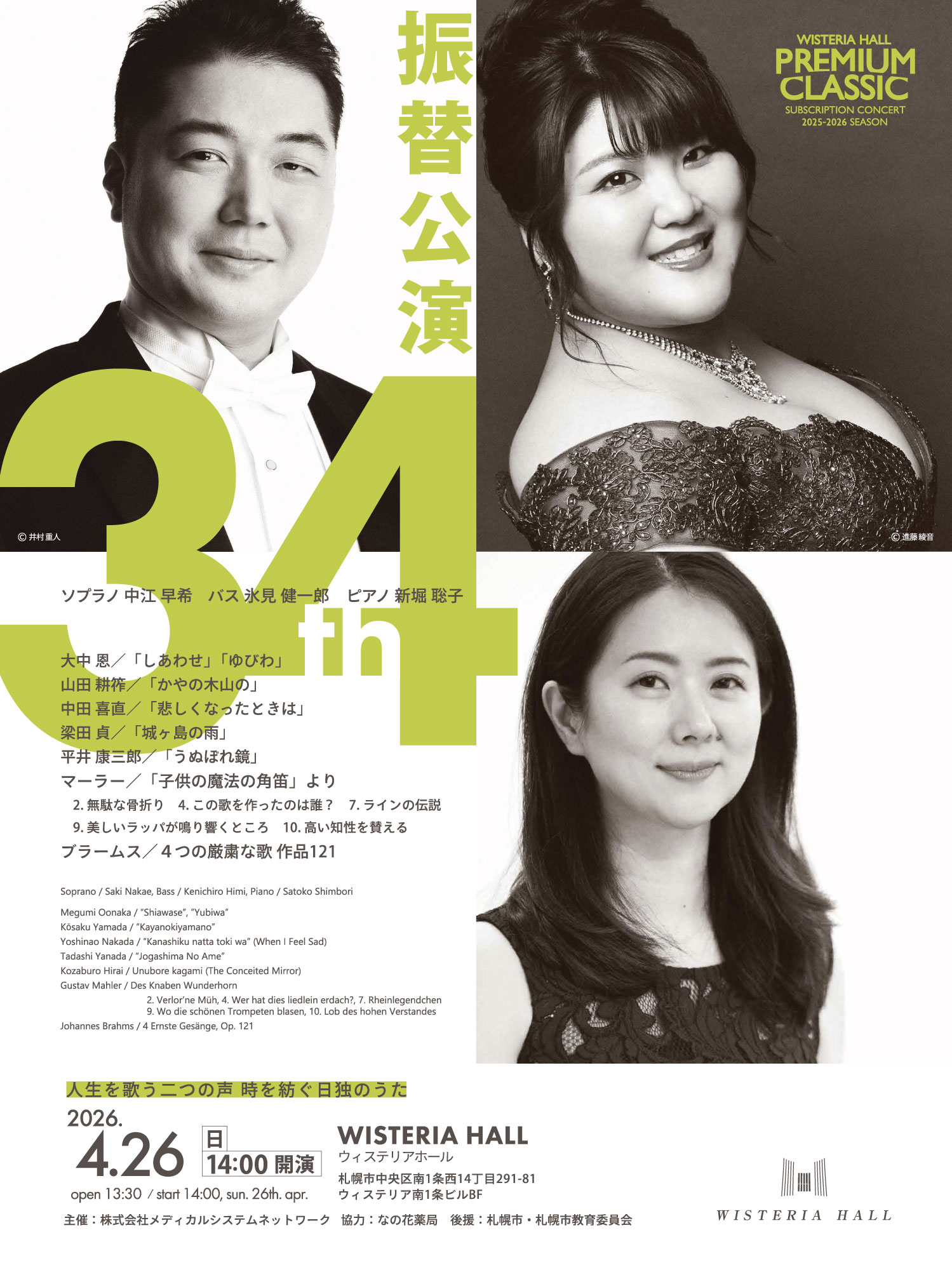 ソプラノ 中江 早希 バス 氷見 健一郎 ピアノ 新堀 聡子